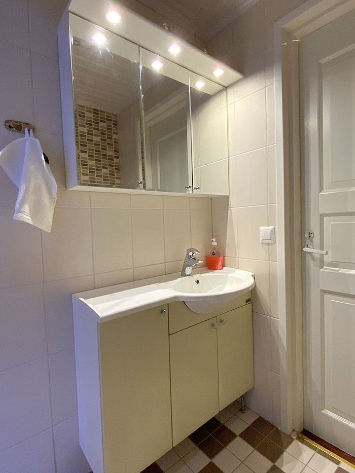 Ympäröivä luonto on tuotu sisälle sisustamalla eri kokoiset makuuhuoneet lämminhenkisesti ja yksilöllisesti saaristomaisemaa kunnioittaen. Kahdesta huoneesta myös parveke merelle.